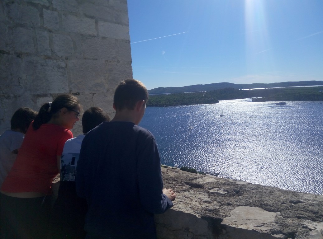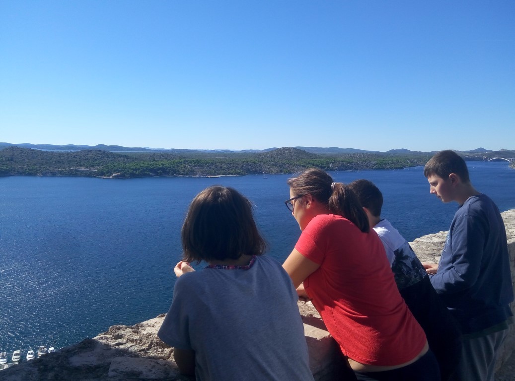 U četvrtak, 27. rujna 2018., učenici viših razreda osnovne škole Centra posjetili su Tvrđavu svetog Mihovila u pratnji svoje razrednice Ivane Vrljac. Posjet je organiziran u sklopu izvanučioničke nastave iz Hrvatskog jezika, a povodom proslave Dana grada Šibenika i blagdana sv. Mihovila koje obilježavamo 29. rujna. Šetnjom sa Šubićevca, niz Gimnaziju, preko Vanjskog, Poljane i Masne ulice, učenici su stigli do Tvrđave i odmorili u prvim redovima sjedala za publiku. Podsjetili su se onoga što znaju o Danu grada Šibenika i svetome Mihovilu, a zatim i naučili nešto novo o povijesti Tvrđave. Odmor je završio zajedničkom pjesmom Hrvatska se Šibenikom diči koju su naučili kada su obrađivali temu Bitka za Šibenik. Posjet je nastavljen šetnjom bedemima i uživanjem u pogledu, iako se svi pomalo bojimo visine. Zaokupljenost predivnim pogledom na naš grad zamijenila je strah pa je obilazak nastavljen u veselom ozračju i prepoznavanjem poznatih gradskih lokacija. Na povratak s Tvrđave u školu krenuli su Perivojem Ane Rukavine u kojem su uz igru još malo odmorili od uzbuđenja, a zatim nastavili put prema Šubićevcu.