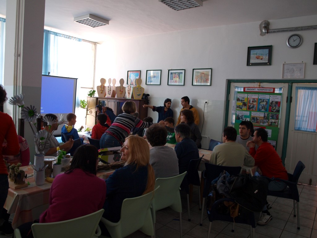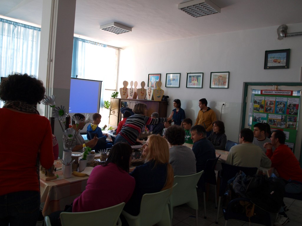 Nakon kratkog prikaza projekta „Kompostići“, slijedio je radionički program – stručni radnici Centra vodili su zanimljive edukativne i kreativne ekološke radionice u kojima su sudjelovali svi učenici i odrasli korisnici Centra zajedno s gostima iz lokalnih dječjih vrtića i osnovnih škola. U ponudi je bilo čak osam radionica u kojima su se izrađivali ukrasni i uporabni predmeti od otpadnih materijala, učilo se kako se stupa vuna, upoznavao se proces sušenja jabuka u sušari, oslikavao komposter nastao u projektu Kompostići. Nakon radioničkog dijela programa slijedio je kviz ekološkog znanja, a druženje je završilo natjecanjem u odvajanju otpada.