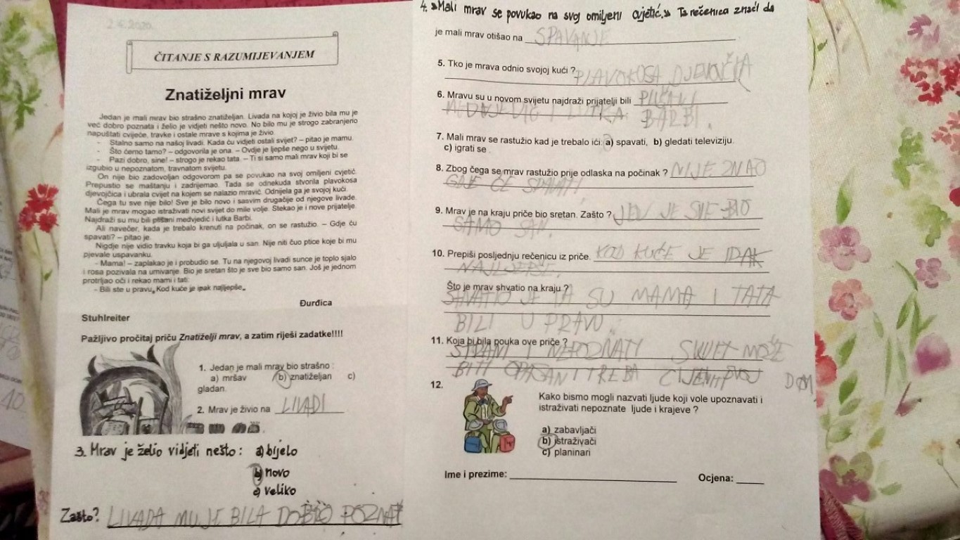 Svi naši učenici, i oni kod kuće i oni u školi, marljivo rade, ispunjavaju listiće, pišu u bilježnice, rješavaju zadatke na računalima, bojaju, lijepe, vježbaju motoriku – tko kako može i zna. Ne morate im vjerovati na riječ, slobodno provjerite 200-tinjak fotografija u i dva video-uratka koji o tome svjedoče 😊 Dragi naši, ostanite nam i ubuduće tako vrijedni i #ostanitedoma! Sve vas toplo pozdravljaju vaši učitelji!