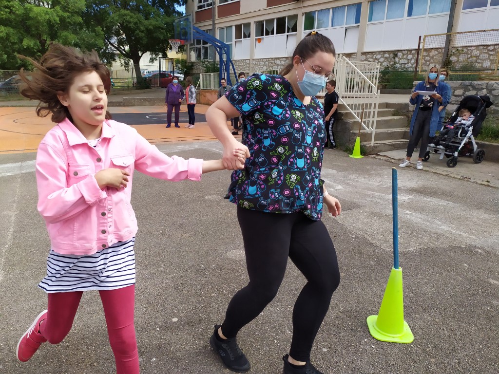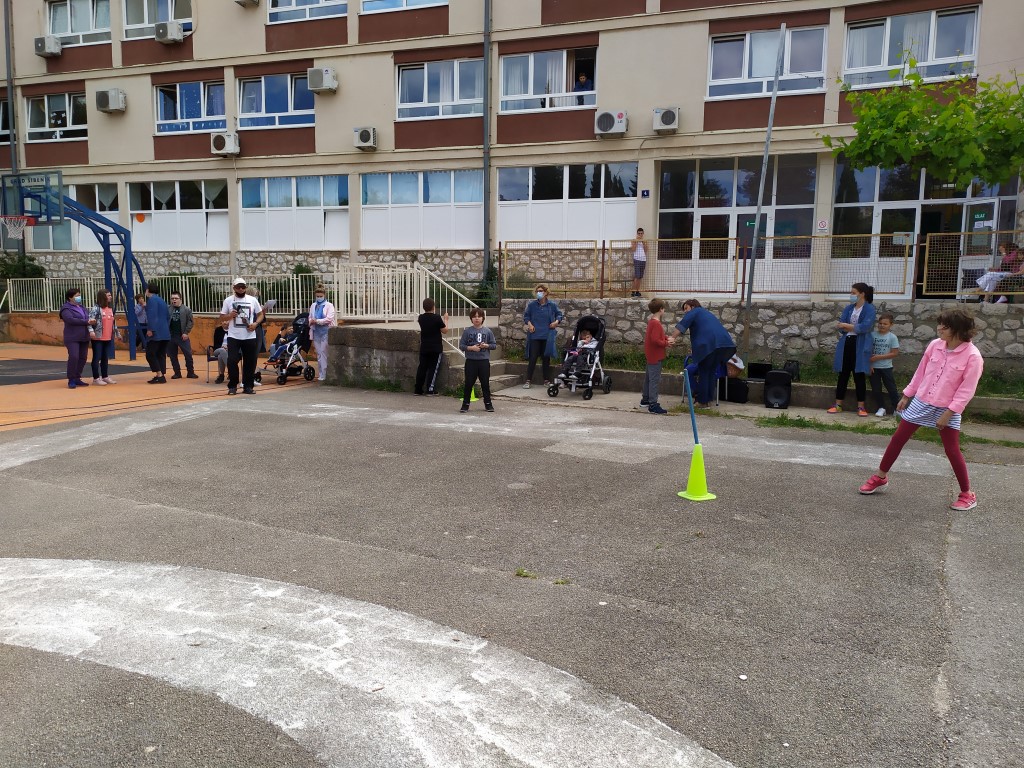 Tako smo se i danas okupili na našem igralištu i uz zvuke glazbe međusobno natjecali u sportskim aktivnostima: bacanju loptica u kolut i trčanju. Sportske aktivnosti nam je pripremio naš učitelj tjelesnog Jovo Krasić koji je bio i strog sudac, a učenicima u pomagali učitelji i asistenti, ali i drugi učenici. Na kraju je naša pedagoginja Marina Vrankulj ipak odlučila sve sudionike nagraditi slatkišima tako da su se veselili i pobjednici, ali i svi ostali.