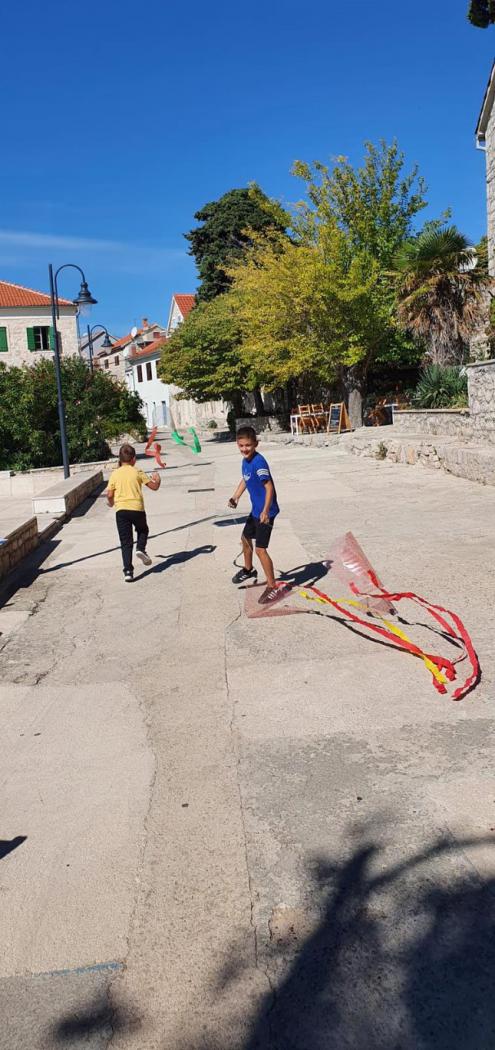 U petak 1. listopada 2021. godine obnovili smo tradiciju nakratko prekinutu lani zbog korona virusa i vratili se na otok Prvić na manifestaciju Kreativni dani Fausta Vrančića. Tamo su nas čekale drage prijateljice iz Udruge Otok i njihovi suradnici s uvijek zanimljivim kreativnim radionicama. Ove smo godine sudjelovali u ekološkoj i zmajarskoj radionici. U ekološkoj radionici učili smo o važnosti očuvanja čistoće voda, ali i kako filtracijom možemo pročistiti zagađenu vodu. Zmajari su izradili vesele šarene zmajeve i s velikom radošću utrkivali se s vjetrom. U predahu od radionica svi zainteresirani mogli su obojiti svoje dlanove i ostaviti svoj šareni otisak. Za kraj boravka na otoku posjetili smo i Memorijalni centar Fausta Vrančića, a zatim smo se pozdravili, nadamo se samo do sljedeće godine.
