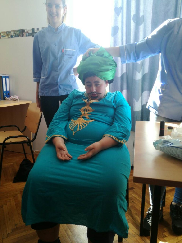 Današnje poslijepodne dugo se iščekivalo u Centru, a točno u 15 sati u predvorje su dotrčali naši učenici i odrasli korisnici prerušeni tako da ih je bilo teško prepoznati. Uz pomoć svojih odgajatelja: Lucije Matulović, Kristine Ćaleta Car Mikulandre, Sanje Vunić i Petra Grancarića pretvorili su se u velike bebe, dame iz visokog društva, svećenike, klaune, mažoretkinje...