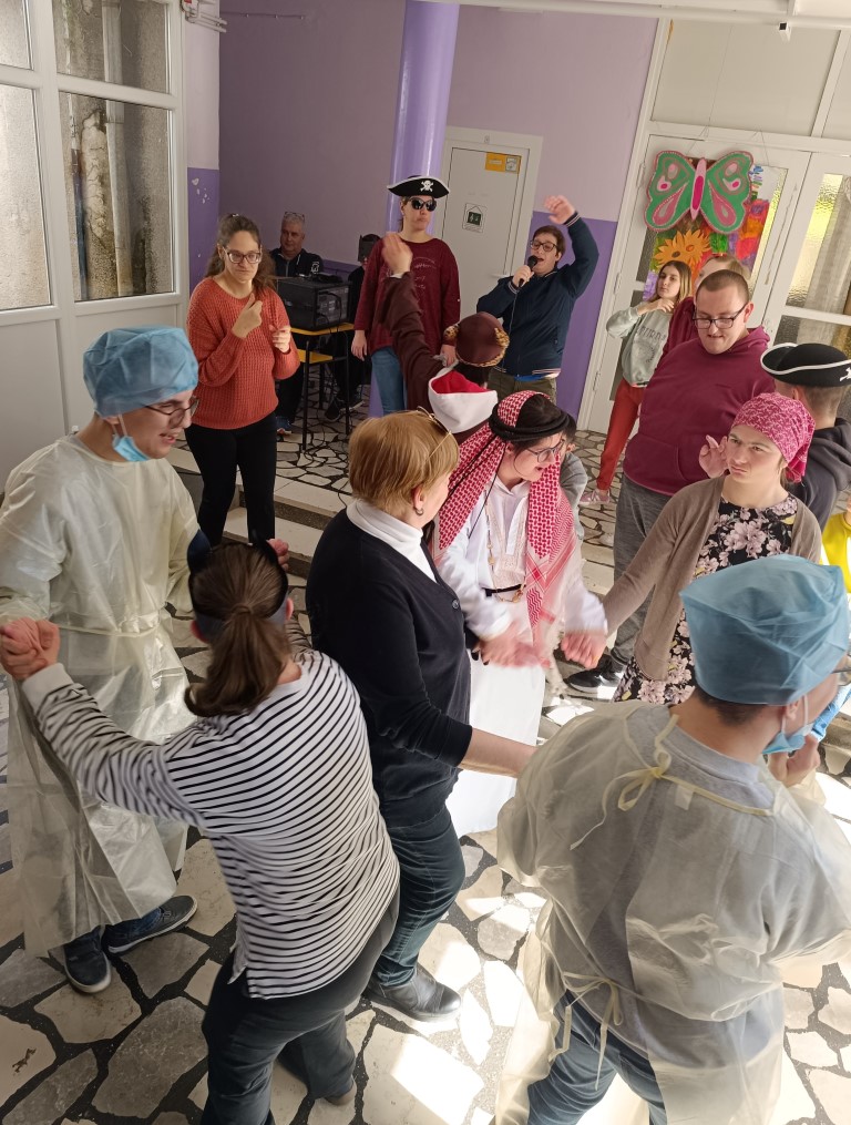 Na pokladni utorak 4. 3. Centrom su zavladale vesele maske i na prvi je pogled bilo teško prepoznati naše učenike, odrasle korisnike i radnike. Početna zabuna, međutim, nije nam zasmetala da zajedno zapjevamo i zaplešemo.