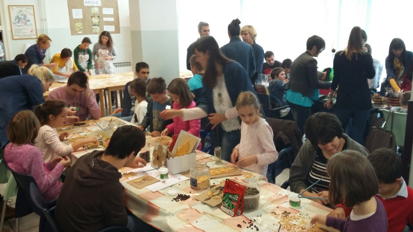 Centar za odgoj i obrazovanje „Šubićevac“ 30.10.2015. bio je mjesto prekrasnog druženja uz kreativan rad i zabavu. Obilježili smo Dan kruha i Dane zahvalnosti za plodove zemlje otvarajući vrata Centra brojnim gostima koji su se priključili našim kreativnim radionicama, sudjelovali u kulturno-umjetničkom i izložbenom dijelu programa. Družili smo se tako sa šibenskim gimnazijalcima, Dječjim vrtićem „Osmijeh“, učenicima osnovnih škola Petra Krešimira IV., Jurja Dalmatinca, Jurja Šižgorića te korisnicima Udruge „Kamenčići“, a kasnije su nam se pridružili i posebni gosti iz Vrlike i Splita: Centar za rehabilitaciju "Fra Ante Sekelez", Centar za odgoj i obrazovanje "Juraj Bonači", Centar za odgoj i obrazovanje "Slava Raškaj". Jutro smo počeli radno, s čak osam radionica: u radionici Nade Vulinović Zlatan i Mirjane Radak pekle su se kokice i kesteni. Učiteljice Marina Burazer, Ana Parać, Ana Blaić, Marijana Rupić, Lana Jurišić i volonterka Julijana Mašina izrađivale su s djecom prigodne ukrase. Radna instruktorica Marija Radić s odraslim je korisnicima izrađivala kutije za kokice od recikliranog materijala. Radna instruktorica Suzana Antunac s odraslim korisnicima izrađivala je umjetnička djela od lišća. Nastavnica tehnologije ugostiteljstva Marijana Gladović i učiteljica Kata Petrović s učenicima su pravile kiflice. Nastavnica tehnologije strojarstva Ivana Miškić, učiteljica Marijana Matuša i vanjski suradnik Krunoslav Andrović s djecom su izrađivali ukrase od šiški i žice postupkom lemljenja. Radionicu sušenja jabuka vodile su radna instruktorica Anita Vlahović, učiteljica Gordana Ikica i stručna učiteljica Brankica Goger. Nakon radioničkog dijela programa župnik župe svetog Ante fra Božo Morić blagoslovio je kruh i plodove zemlje čime je započela priredba u kojoj su sudjelovali učenici i odrasli korisnici Centra „Šubićevac“, Centra za rehabilitaciju „Fra Ante Sekelez“ iz Vrlike, COO „Slava Raškaj“ iz Splita i COO „Juraj Bonači“ iz Splita. Poslije priredbe zasluženo smo odmorili razgledavajući radove korisnika i kušajući njihove pekarske proizvode. Druženje je završilo posjetom proizvodnom pogonu pekare Krka na Šubićevcu gdje smo od inženjerke Ljiljane Njanjare doznali najvažnije podatke o proizvodnji kruha.