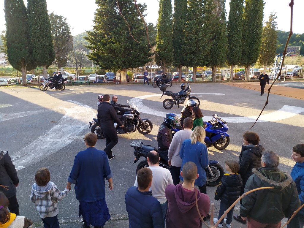 U utorak, 14. siječnja 2020., naše su učenike i odrasle korisnike već četrnaesti put posjetili članovi Moto-kluba "Galebi". Iako je posjet tradicionalno rezerviran za prosinac, 2019. je zbog nepredviđenih okolnosti otkazan, tako da su ovaj susret s dragim gostima korisnici iščekivali s još većim nestrpljenjem i radošću. Uslijedila je obvezna vožnja po igralištu i zajedničko druženje u blagovaonici. Iako su božićni blagdani i darivanje iza nas, bajkeri su i ovaj put donijeli slatke pakete i dodatno razveselili sve nazočne.