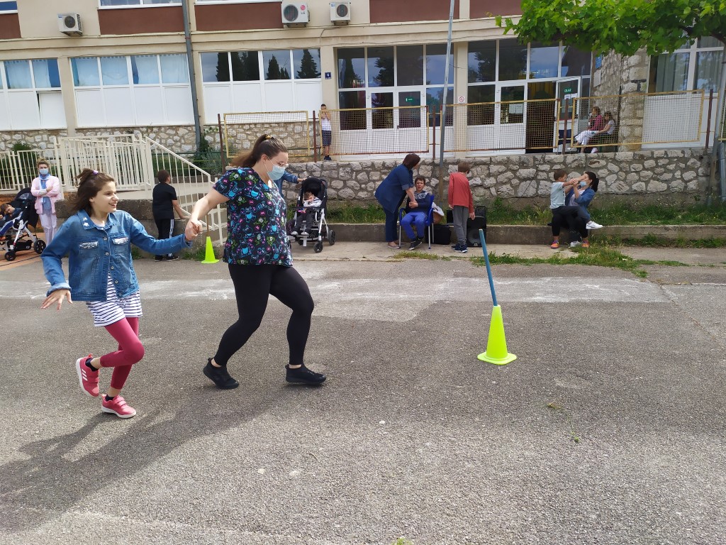 Tako smo se i danas okupili na našem igralištu i uz zvuke glazbe međusobno natjecali u sportskim aktivnostima: bacanju loptica u kolut i trčanju. Sportske aktivnosti nam je pripremio naš učitelj tjelesnog Jovo Krasić koji je bio i strog sudac, a učenicima u pomagali učitelji i asistenti, ali i drugi učenici. Na kraju je naša pedagoginja Marina Vrankulj ipak odlučila sve sudionike nagraditi slatkišima tako da su se veselili i pobjednici, ali i svi ostali.