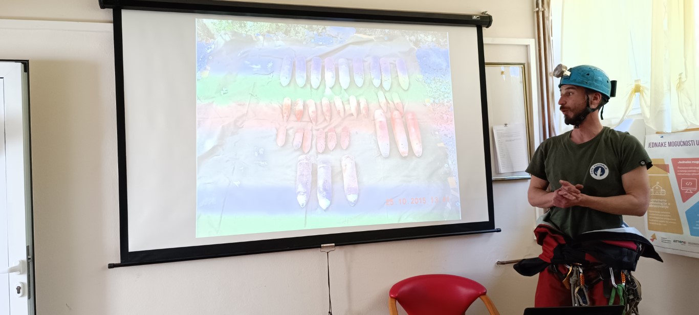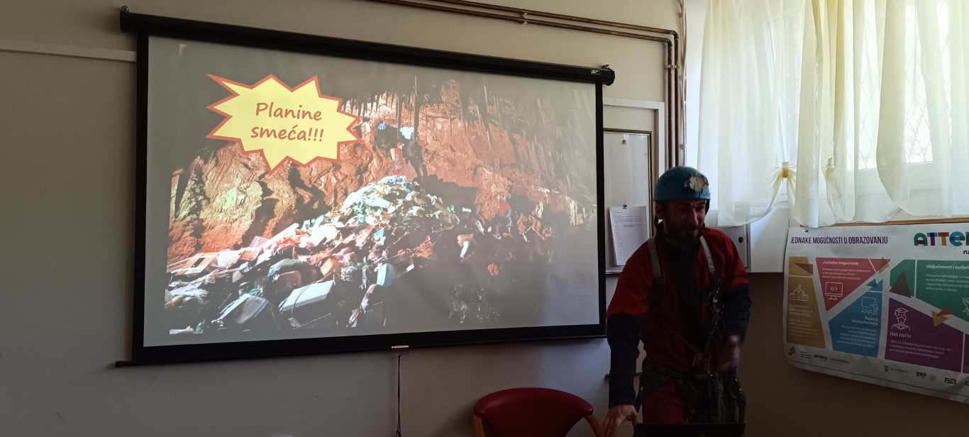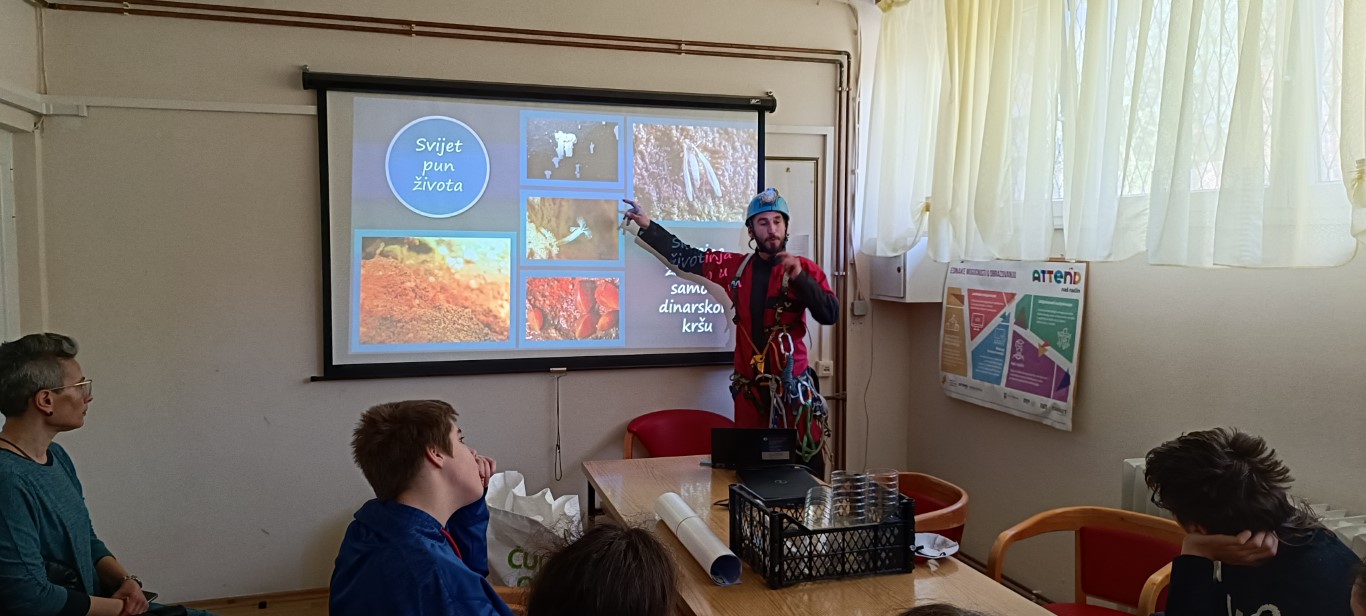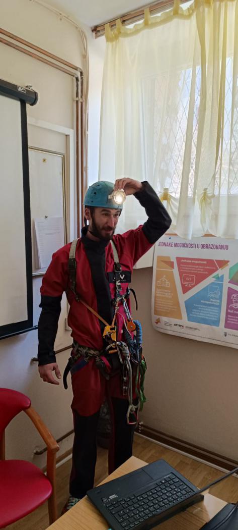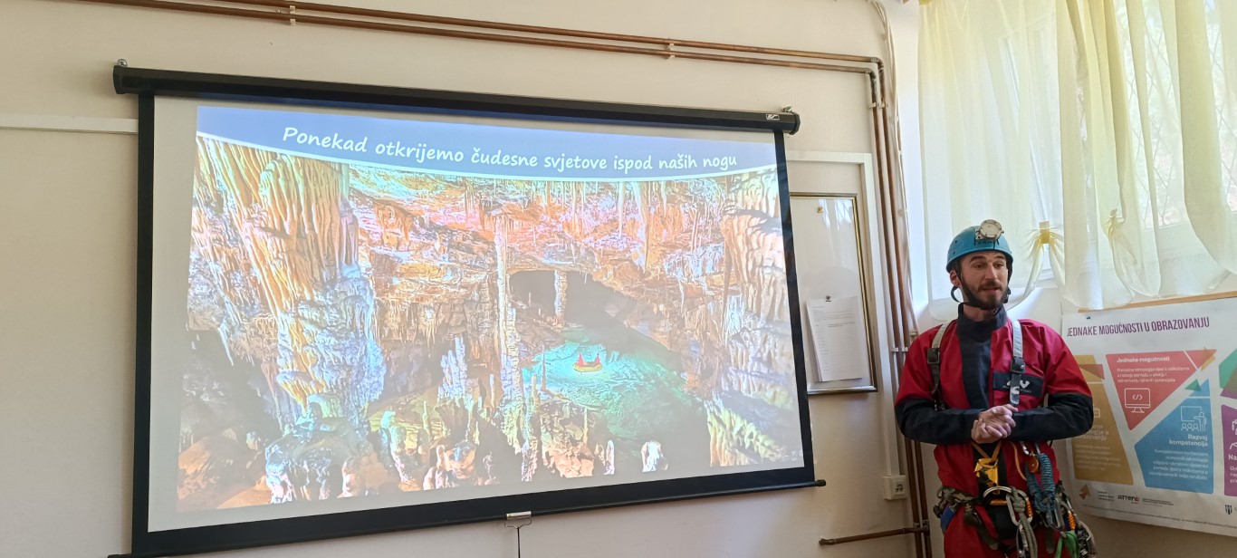 Posljednji dan nastave prije praznika iskoristili smo da još nešto naučimo. U goste smo pozvali ambasadora Čistog podzemlja Lovru Lučeva jer nismo baš puno znali o krškom podzemlju ni o speleološkoj opremi, samo smo nešto načuli o bacanju smeća u jame i spilje. Čisto podzemlje je volonterska speleološka inicijativa koja se bori protiv bacanja otpada u krško podzemlje. S velikim smo zanimanjem poslušali predavanje, upoznali se s dijelovima speleološke opreme, sudjelovali u radionici filtracije vode i za kraj se premjestili u dvoranu za tjelesni. Tamo smo iz prve ruke saznali na koji se način speleolozi spuštaju u jame i zaključili da je to jednako težak koliko i uzbudljiv posao. Ako većinu toga i zaboravimo - u pamćenju će nam sigurno ostati koliko je važno očuvati čistoću našeg krša.