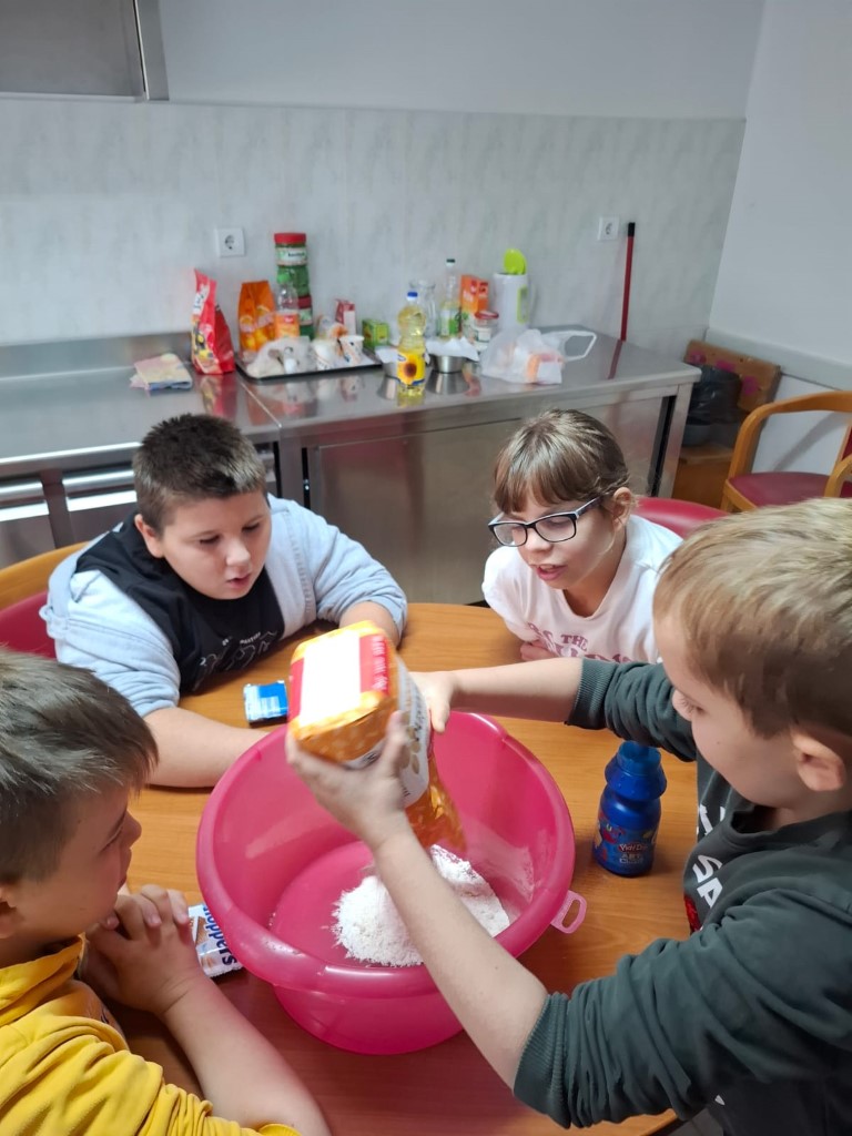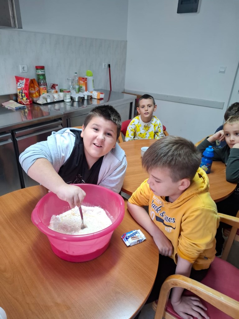 Iako su mali, naši učenici 2. i 3. razreda osnovne škole ipak su dovoljno veliki da bi se iskrali u kuhinjski kabinet. Naravno, sve pod budnim okom i uz podršku njihovih učiteljica Sanje i Dolores. Uz njihove upute i pomoć listopad su iskoristili za obilježavanje Dana kruha i zahvalnosti za plodove zemlje. Usavršavajući stare i učeći nove vještine razveselili su mnoge od nas koji smo im se našli na putu - nisu propustili ponuditi nas svojim slatkim pekarskim proizvodima!
