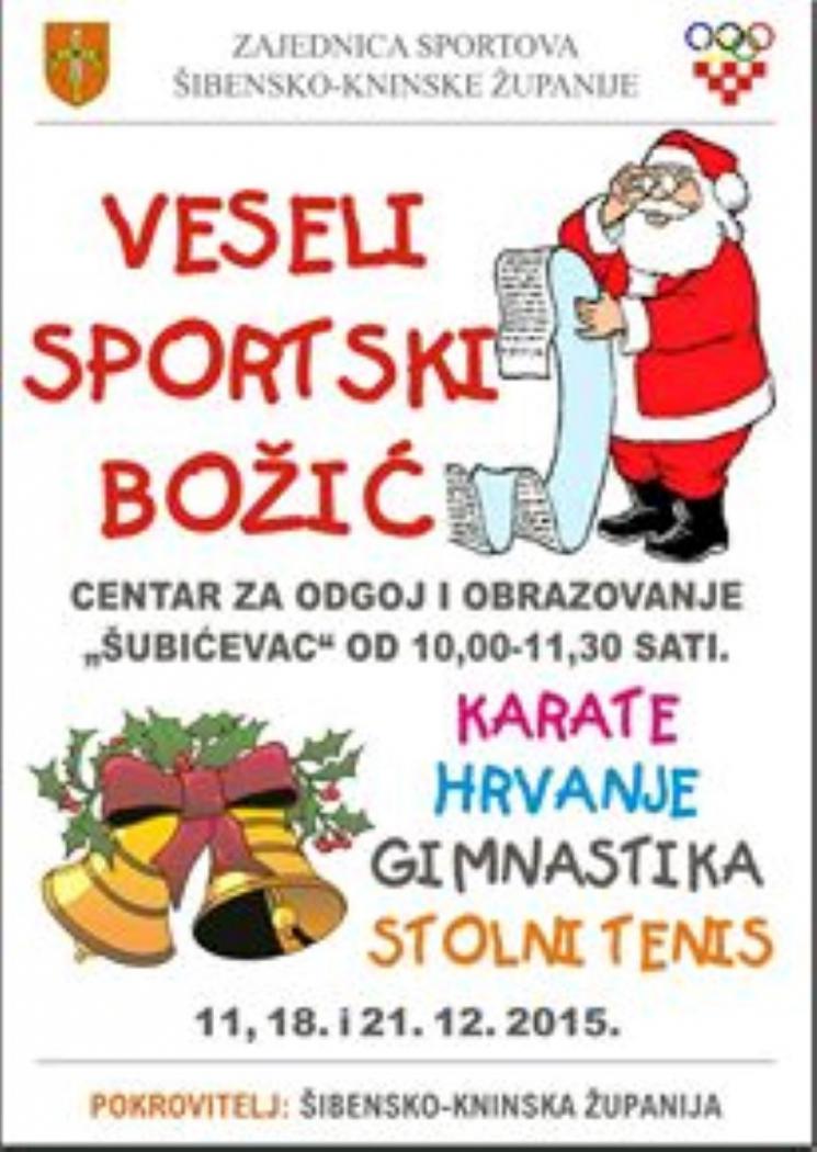 Božićnom ugođaju u Centru „Šubićevac“ u petak, 11.12.2015. doprinijeli su šibenski sportaši sudjelujući u sportskoj manifestaciji Veseli sportski Božić koju organizira Zajednica sportova Šibensko-kninske županije uz pokroviteljstvo Šibensko-kninske županije s ciljem promidžbe sporta među djecom. Korisnici Centra dočekali su goste pjesmom „Bijeli Božić“, a zatim je šibensko-kninski župan Goran Pauk predstavio program manifestacije u čemu su mu se pridružili sportaši Hrvatskog nogometnog kluba „Šibenik“, Građanskog košarkaškog kluba „Šibenik“, Ženskog košarkaškog kluba „Šibenik“, Košarkaškog kluba „Jolly“i Vaterpolo kluba „Solaris“. Okupljene su pozdravili i predsjednik Zajednice sportova Šibensko-kninske županije Željko Šimunac, glavni tajnik Zajednice sportova Ante Tanfara i pročelnik Upravnog odjela za zdravstvo i socijalnu skrb Šibensko-kninske županije Nikola Mihaljević. U sklopu Veselog sportskog Božića održale su se sportske radionice karatea, gimnastike, stolnog tenisa i hrvanja, a sportske su vještine demonstrirali članovi Karate kluba „Šibenik“, Gimnastičkog kluba „Dišpet“, Stolnoteniskog kluba „Zaton“ i Hrvačkog kluba „Šibenik“. Veseli sportski Božić održat će se još dva puta, u petak 18. prosinca i u ponedjeljak 21. prosinca od 10.00 do 11.30 sati. Učenike i odrasle korisnike Centra oduševili su darovi, a posebno košarkaške lopte s potpisima svih igrača KK Jolly i GKK Šibenik, vaterpolska i nogometna lopta te dresovi.