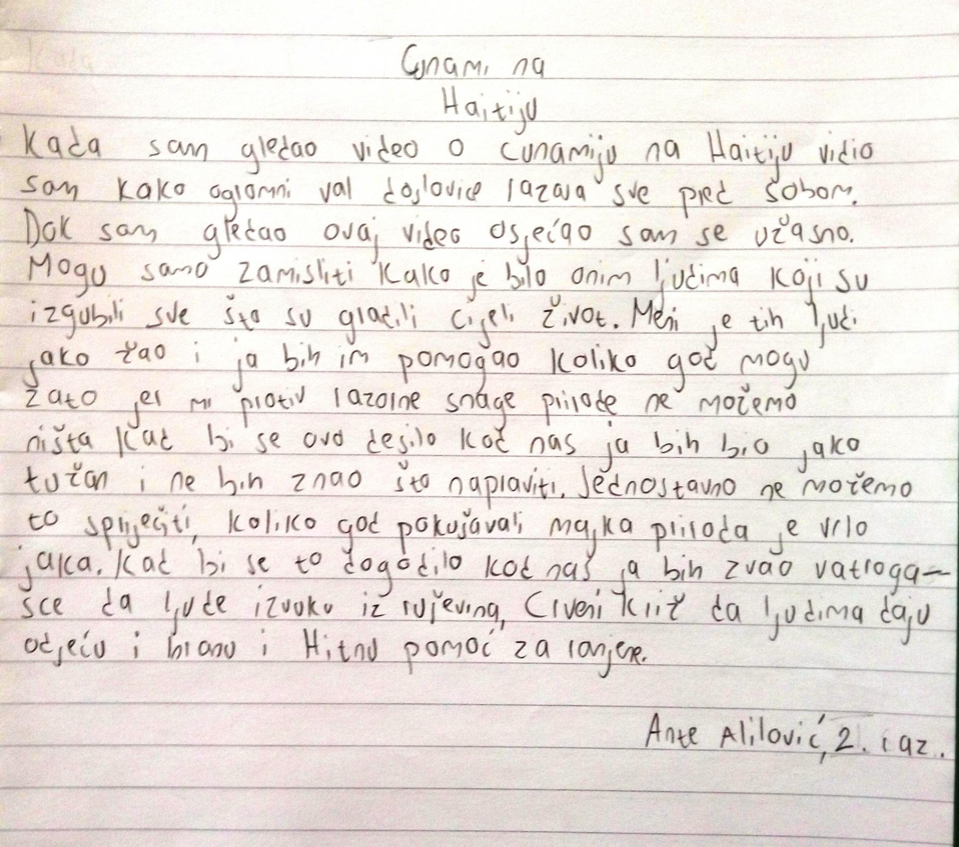 2. Ante Alilović, 2. razred srednje strukovne škole (mentorica: Ivana Vrljac, nastavnica Hrvatskog jezika),